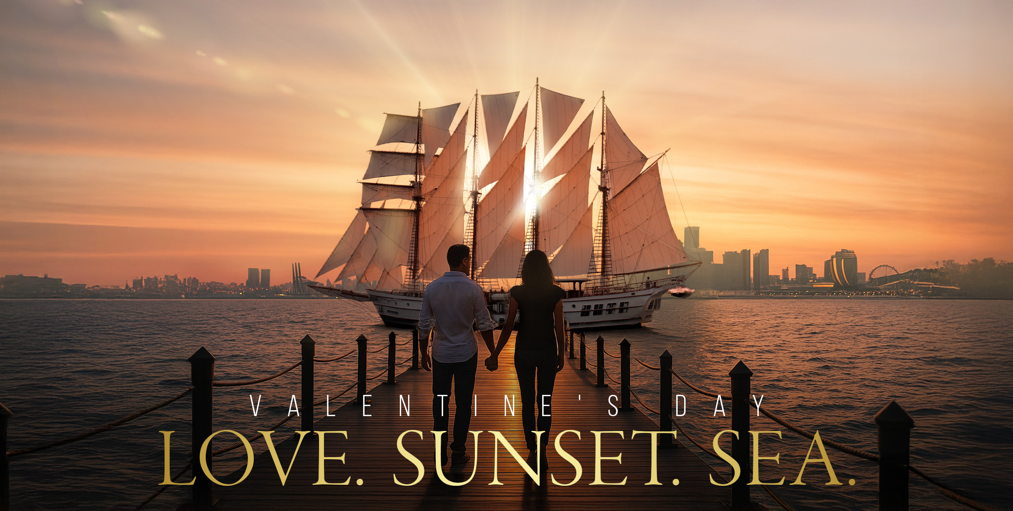 Indulge in an unforgettable romantic getaway this coming Valentine’s Day onboard the Royal Albatross. Immerse yourselves in the splendor of the Royal Albatross as you dine and sail along the Sentosa coastline, surrounded by the breathtaking seascape, serving as a picturesque backdrop to your romantic evening.