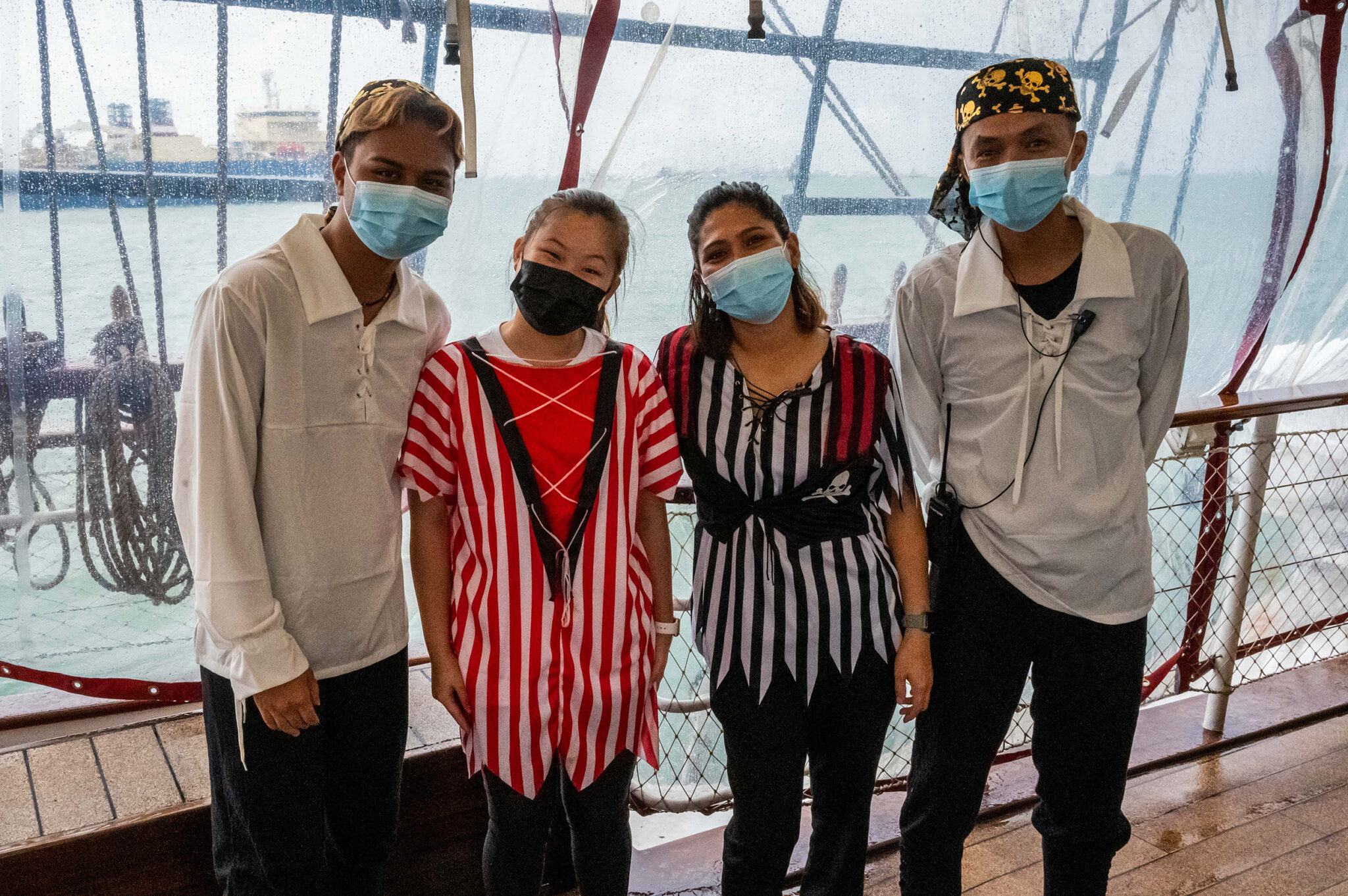 Enjoy a beautiful spread of salmon sashimi and sushi, as well as savouring the taste of freshly shucked Canadian oysters per table. Aside from the free-flow prosecco to keep your spirits high, there is endless fun catered to everyone. For kids, we have various pirate-themed activities onboard throughout the sail.